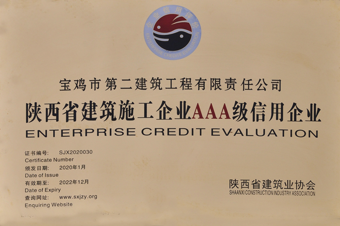 2020年陜西省建筑施工企業(yè)AAA級(jí)信用企業(yè)
