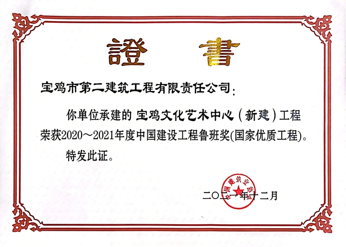 ?2020~2021?年度中國建設(shè)工程魯班獎(寶雞文化藝術(shù)中心(新建)工程)