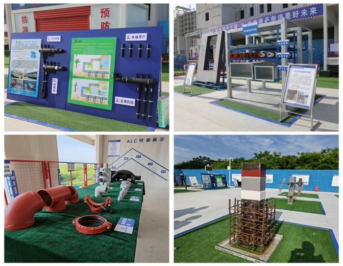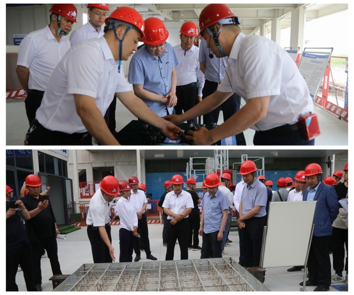 觀摩現場以視頻、展板、實體、樣板等多方位形式,對綠色建造、智能建造、關鍵施工技術共計10余項創(chuàng)新技術進行集中展示,全面展示了裝配式鋼結構體系、綠色建筑材料的應用、文明施工管理現代化模式。