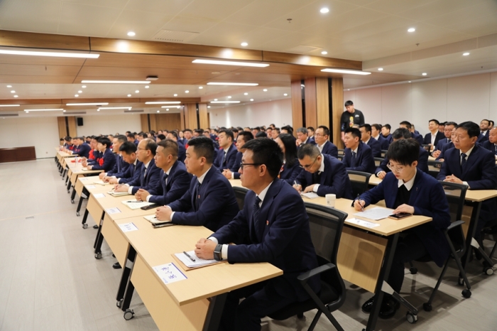 集團公司高層領導、中級管理人員、受表彰獎勵的優(yōu)秀單位和個人、總部全體及2023年度新員工,共計300余人參加了會議。副總經(jīng)理、總會計師嚴海軍主持會議。