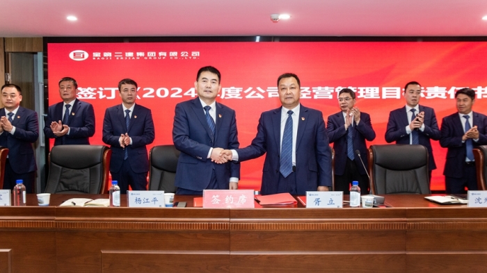 黨委書記、董事長胥立與黨委副書記、總經(jīng)理楊江平簽訂《2024年度經(jīng)營管理目標責任書》。