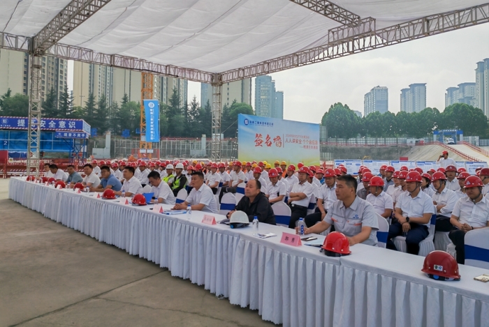 集團(tuán)公司黨委副書(shū)記、總經(jīng)理?xiàng)罱?,副總?jīng)理、總會(huì)計(jì)師嚴(yán)海軍,副總經(jīng)理申小龍出席儀式。集團(tuán)公司總部相關(guān)部門(mén),寶雞片區(qū)各項(xiàng)目部負(fù)責(zé)人、專(zhuān)職安全管理人員及現(xiàn)場(chǎng)施工人員共計(jì)150余人參加了本次活動(dòng),儀式由副總工程師、工程管理部經(jīng)理郭為群主持。